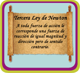 Newton comprendió que en la interacción entre dos cuerpos siempre las fuerzas aparecen en pares, es decir una fuerza de acción y otra de reacción de igual magnitud y sentido contrario, así formulo su tercera Ley. |