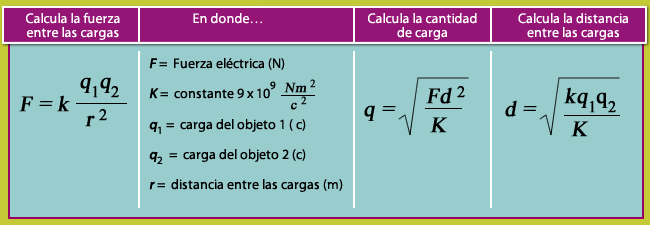 Esta ecuación la conocemos como Ley de Coulomb y se utiliza para calcular la fuerza entre cargas: