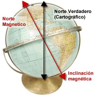 Se llama declinación magnética al ángulo de desviación formado entre el norte geográfico real y el norte que señala la brújula.