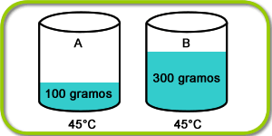 Imagina que tenemos dos recipientes con agua a la misma temperatura. El recipiente A tendrá menor cantidad de agua que el B.