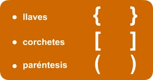 Los signos de agrupación son los siguientes: