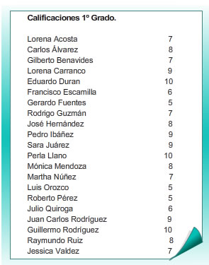 Se registraron las calificaciones de Matemáticas de los alumnos de primero de secundaría y estos fueron los resultados.